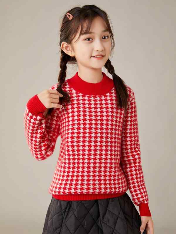 キッズセーター 男女兼用 厚手 半ハイネック カシミヤ 切り替え チェック柄 ジャガード 長袖 プルオーバー スクール 秋冬