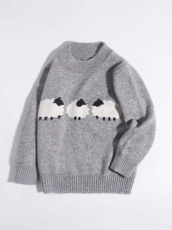 キッズ セーター カシミヤ ウール 男の子 女の子 かわいい ひつじ アニマル柄 キャラクター クルーネック 丸首 厚手 あったか 暖かい 防寒 柔らかい 肌触り 秋冬 冬 長袖 プルオーバー 子供服 カジュアル トップス