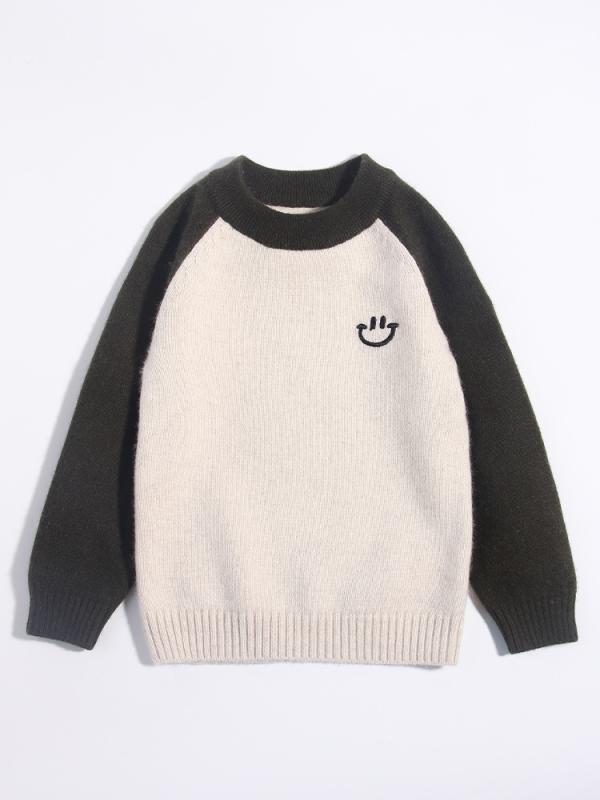 キッズ セーター 男の子 女の子 カシミヤ クルーネック スマイル 配色切り替え 厚手 柔らか 優しい肌触り 秋冬 カジュアル 通学 普段使い プルオーバー
