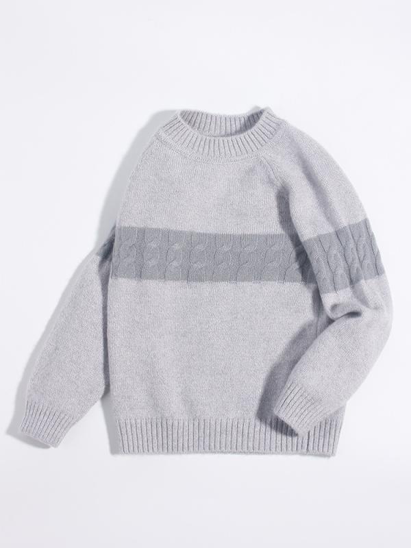 キッズセーター 男の子 カシミヤ100% クルーネック ニット ストライプ 切り替えデザイン 長袖 厚手 暖かい 普段使い 通学 秋冬 ライトグレー