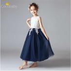 キッズドレス 発表会 結婚式 100 110 120 130 140 150 安い ノースリーブ ロング ネイビー 上品 かわいい