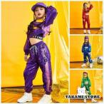 セットアップ キッズ ダンス パンツ ダンス衣装キッズ 女の子 紫 赤 青 緑スパンコール衣装 派手 ガールズ キッズダンス衣装