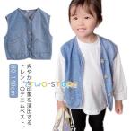 キッズ デニム ベスト 子供服 女の子 男の子 カジュアル Gベスト アウター Gジャン ジャケット 綿 通学 通園 アメカジ ダンス衣装 普段着 ジ