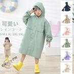 レインコート キッズ 子供用 女の子 男の子 長め ロング つば付き 無地 レインポンチョ 雨具 雨合羽 リュック対応 カジュアル おしゃれ 小学生