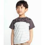 tシャツ リーフ柄ボーダー切り替え天竺半袖Tシャツ(90~150cm) キッズ 子供服 男の子 女の子