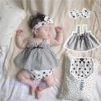 ベビー服 女の子 ロンパース 新生児 服 短パン パンツ セット 3点セットリボン 可愛い チェック柄 サマー 夏 赤ちゃん お祝い服 韓国服 お食い初め ギフト誕生日