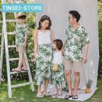 アロハシャツ メンズ レディース 親子コーデ 木の葉 親子 ペアルック ベビー 親子お揃い アロハ リゾートワンピース 上下セット ハワイ 新作 カップル服