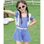 水着 キッズ水着 チェック柄バックリボンワンピース風オールインワンスイムウェア+ショートパンツ j上下2点セット キッズ 子供 女の子