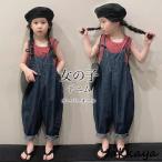 韓国子供服 サロペット オーバーオール キッズ 女の子 オールインワン デニムパンツ 長ズボン 子ども服 ジュニア ガールズ 通園 通学着 110-160cm