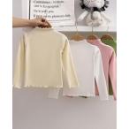カットソー 長袖 子供用 キッズ ベビー ジュニア 女の子 ハイネック メロウフリル 無地 単色 シンプル おしゃれ かわいい 着回し 洗い替え Tシャツ トップス お