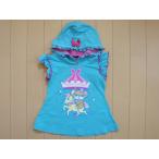 アースマジック earth magic 子供服 女の子 100cm 半袖 チュニック カットソー 水色 マフィーちゃん 春 夏 フード付き ★4 トップス ガールズ キッズ