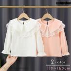 カットソー キッズ ジュニア 子供服 子ども服 女の子 トップス 長袖 丸首 ラウンドネック 袖ゴム 背中ボタン フリル レース 襟付き 無地 ホワイ