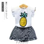 上下セット 子供服 キッズ ジュニア 2点セット こども 夏 Tシャツ カットソー スカート スカーチョー ショートパンツ フリル パイナッ