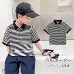 半袖Tシャツ 子供 白黒ボーダー Tシャツ 夏 ポロシャツ 男の子 サマーTシャツ オーバーサイズ コットンTシャツ 女の子 ボーダーTシャツ