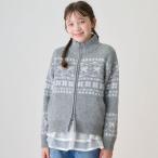 メゾピアノジュニア(mezzo piano junior)リボン柄ノルディックジップカーディガン