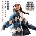 【25日限定10%OFFクーポン】一部即納 ニット カーディガン 女の子 キッズ 子供用 ガールズ 幾何学柄 コーディガン 春服 長袖 秋服 冬服 アーガイル 前開き ニットセーター 暖かい 子供コート 子供服 セーター ヘチマ襟 羽織り 体型カバー トップス ジュニア アウター 秋冬
