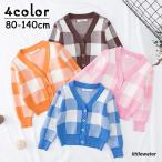 カーディガン ニット 子供服 キッズ ベビー ジュニア 女の子 男の子 長袖 前開き 前ボタン Vネック ブロックチェック トップス 羽織り おしゃれ