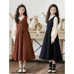 小学生 女の子 ワンピース サスペンダースカート 長袖 カーディガン セット 春 秋 長袖 セットアップ キッズ ジュニア 子ども 子供服 おしゃれ