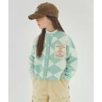 カーディガン 「ピーチーズ」ジュニア ビックワッペンつき ダイヤ柄 ニットカーディガン キッズ 子供服 男の子 女の子