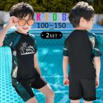キッズ 水着 2点セット 半袖ラッシュガード セパレート 男の子 ショートパンツ おしゃれ かっこいい 子供 子ども ジュニア 黒