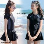 水着 キッズ 女の子 セパレート 半袖 トップス ショートパンツ 大きいサイズ 小学生 高学年 ジュニア 水泳 プール 黒