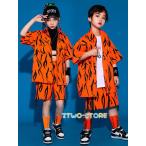 柄シャツ 虎柄 キッズダンス セットアップ 韓国 ヒップホップ 半袖 トップス 柄 ジャケット ショートパンツ 男の子 女の子 子供 発表会 演出服 上下セット