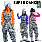 ガールズ ヒップホップ ダンス衣装 セットアップ へそ出し トップス パンツ 派手 フラッグチェック K-POP 韓国 白 ピンク 黄緑 イエロー 赤 紫