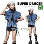 ダンス衣装 キッズ セットアップ ガールズ ヒップホップ 衣装 デニム ベスト ショートパンツ 派手 子供ダンス服 ダンスウェア ダンス衣装 K-POP 韓国