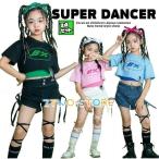 ダンス衣装 キッズ ピンク 水色 黒 白 K-POP 韓国 ガールズ ヒップホップ 子供ダンス服 ダンスウェア キッズダンス衣装 セットアップ