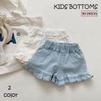 ショートパンツ 半ズボン キッズ ベビー ジュニア 女の子 子供服 ボトムス 短パン ショート丈 フリル デニム 無地 単色 シンプル カジュアル か
