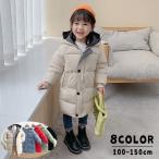 フード付きジャケット キッズ 子供服 ジュニア アウター 中綿入り ダウン風 ジップアップ ロング丈 ミディアム丈 膝丈 スナップボタン ジャンパー