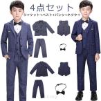 スーツ キッズ パンツ フォーマルスーツ セットアップ ジャケット 結婚式 ジレ フォーマルスーツ スーツセット チェック柄 ネイビー ジュニア 大き