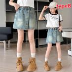 キッズ ジュニア ボトムス 短パン スカート風 カジュアル かわいい シンプル おしゃれ 涼しげ ゆったり 子供服 はきやすい あわせやすい デイリー デニム ゴム