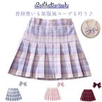 キッズ ジュニア プリーツスカート チェック柄 ミニスカート 2点セット JK制服 インナーパンツ付き リボンタイ付き 中学生 小学生 ハロウィン コ