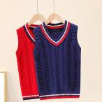 春秋冬 ニットベスト キッズニットベスト ジュニア 子供用セーター カジュアル Vネック 洗える 男の子 防寒 インナー ニットチョッキ