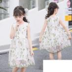 子供服 ワンピース 花柄 刺繍 夏 可愛い 日常 発表会 キッズ 女の子 半袖 ジュニア ドレス チュール