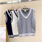 【特価】子供ニット春秋キッズニットジュニア子供用セーターカジュアルVネック学園風洗える男の子女の子インナーニット2点