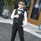 子供スーツ 男の子礼服 ストライプ柄 イギリス風 タキシードジャケット 長袖シャツ キッズジレベスト リボンジュニア5点/6点セットアップ 紳士服 子供春秋冬スーツピアノ発表会 結婚式 入学式 卒業式 フォーマルスーツ