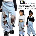 キッズダンス衣装 デニムパンツ 女の子 子供 ジュニア ヒップホップ 長パンツ ダメージ ジーンズ k-pop 韓国 ジャズ ワイドパンツ 練習着 ゆったり ダボダボ