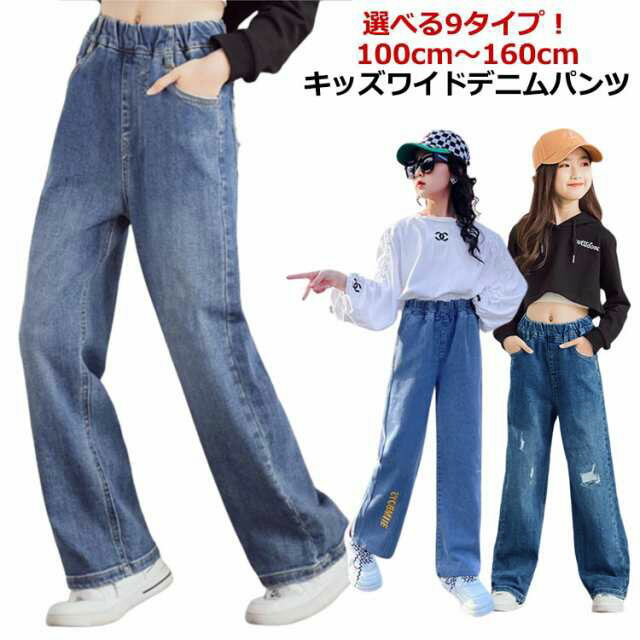 キッズ ジュニア 【選べる9タイプ】 【選べる9タイプ】 120 デニムパンツ ロングパンツ 110 子供服 ストレート デニム ワイドパンツ 130 150 ボトムス 160cm 長ズボン ダメージ 140 ジーパン ジーンズ 男の子 子供 子ども服 ユニセックス ブルー ブラック