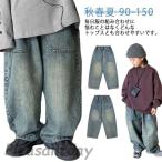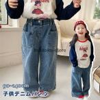 子供服 子ども キッズ デニム ワイドパンツ 女の子 男の子 ロングパンツ ボトムス 長ズボン ゆったり 韓国 ジュニア服 ジーンズ ジーパン 80cm〜150cm