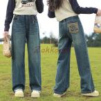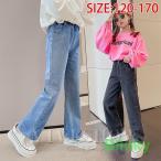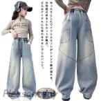 デニムパンツ 子供服 キッズ ジーンズ ワイドパンツ ガールズ 春夏秋 ロングパンツ ジーパン 長ズボン ゆったり 大きいサイズ かわいい ジュニア