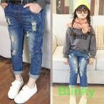 子供 デニムパンツ 女の子 男の子 ウォッシュ ダメージ加工 ジュニア 子ども キッズ デニムパンツ ボトムス ジーンズ 長ズボン 子供服 キッズ服