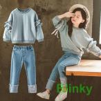 子供服 セットアップ 女の子 長袖 春秋 秋着 上下セット 韓国子供服 キッズ ジュニア デニムパンツ 長ズボン 可愛い おしゃれ