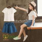 子供服 セットアップ キッズ 女の子 春夏 半袖 2点セット 上下セット Tシャツ デニムパンツ ショートパンツ ジュニア おしゃれ カジュアル 可愛い 新品 150 160