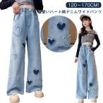 キッズ 120 ジュニア ワイドパンツ デニムワイドパンツ 子供服 キッズ ロングパンツ デニムパンツ ハート ジーンズ 女の子 かわいい 春秋 ウエ