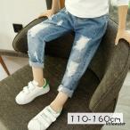 ロングパンツ デニム キッズ 子供服 男の子 女の子 ジュニア ボトムス 単品 長丈 ダメージジーンズ 長ズボン ウエストゴム 無地 カジュアル おし