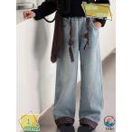 子供 デニムパンツ 女の子 ジュニア 子ども キッズ ボトムス ジーンズ 長ズボン 子供服 ガールズ ストレート ワイドパンツ ウォッシュ加工春秋冬 カジュアル