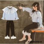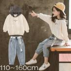 子供服 女の子 ブラウス キッズ セットアップ 長袖 春秋 上下セット 韓国 ジュニア デニムパンツ 長ズボン おしゃれ 小学生 通学着 新品