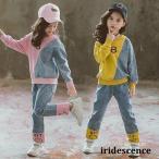 スウェット 女の子 長袖 春秋 韓国子供服 トレーナー子供服 セットアップ上下セット 韓国 ジュニア デニムパンツ 長ズボン 入園 入学